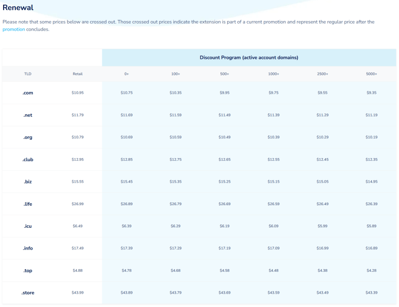 我们可以看到这些特殊后缀的域名可以新注册首年优惠,仅限需要大量域名且首年用的,续费不划算。
