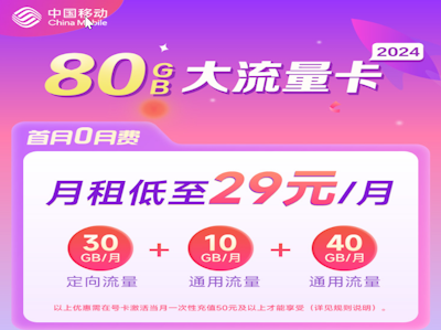 流量:30GB/月国内定向流量(长期有效)套餐内;40GB/月国内通用流量(连续12/24个月,需参加充值活动)语音,含来电显示、国内被叫免费全国