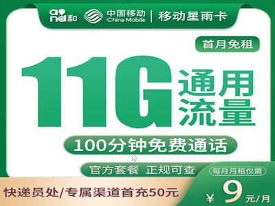 优惠后首月按天折算,不超出套餐内容情况下免月租。第2—6个月月租9元包11G通用流量+100分钟通话。