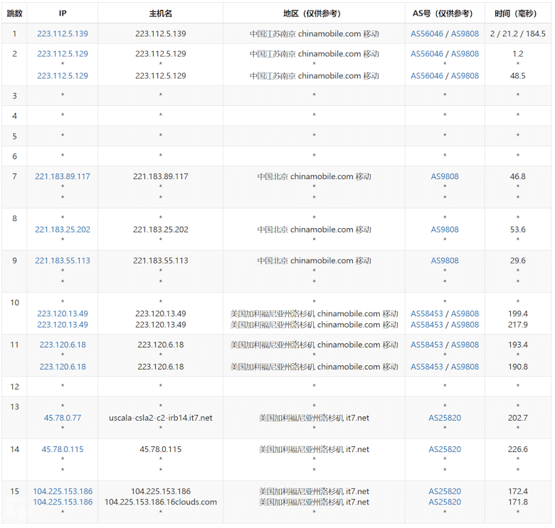 移动节点可以看到直连到洛杉矶移动的,但是也并非优化。