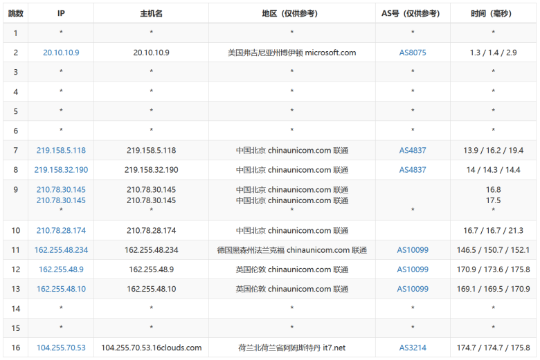 联通节点可以看到去程从德国到英国再到荷兰的。