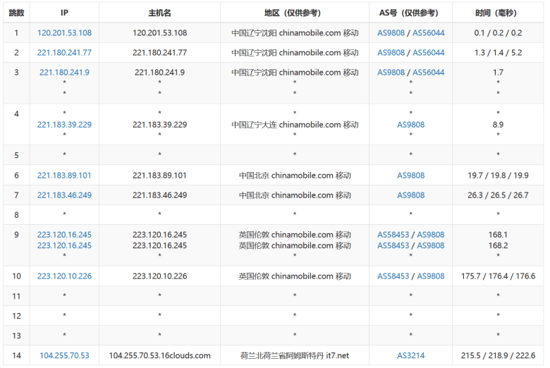 移动节点直接出口到英国伦敦节点再转到荷兰。