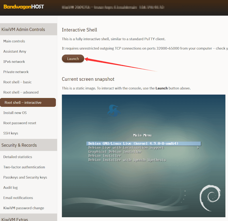 左侧菜单的Root shell – interactive,点击Lanuch。