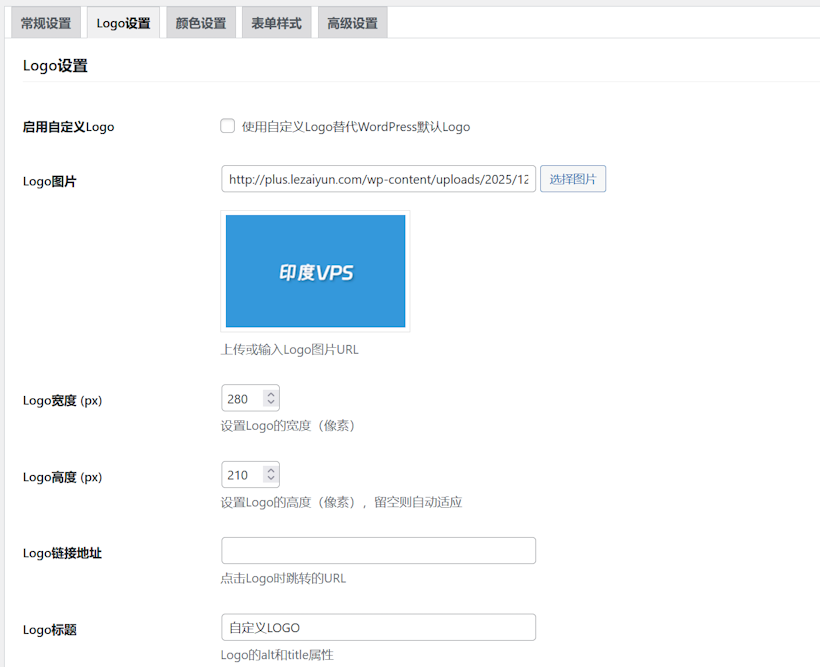 我们可以自定义LOGO的图片、尺寸,LOGO的标题和链接。