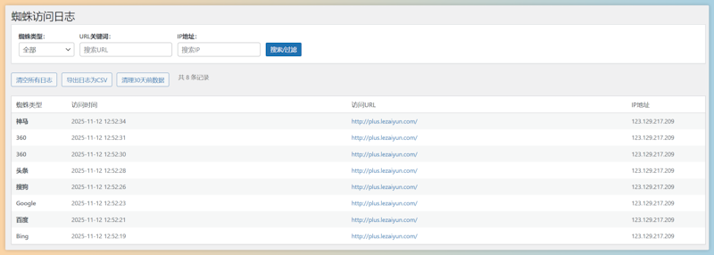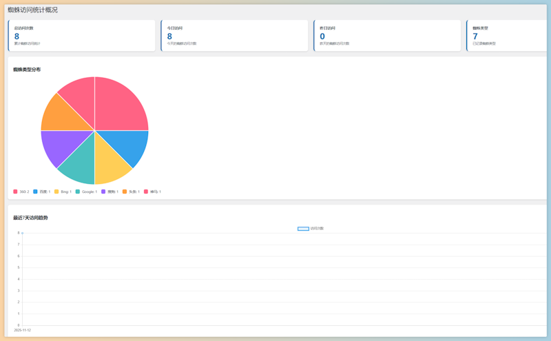 - ✨ 支持8种搜索引擎蜘蛛追踪