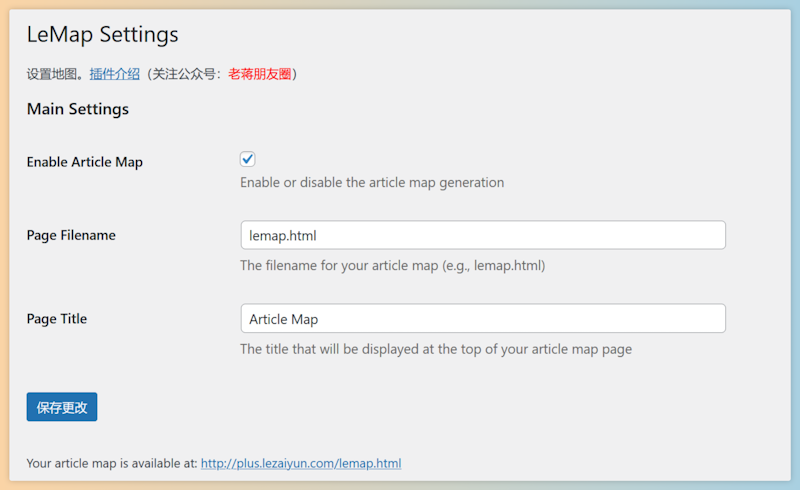 激活插件后,我们可以设置聚合文章的HTML名称,以及标题自定义后保存之后就可以看到根目录多的这个文章页面,而且会在发布文章后自动更新。