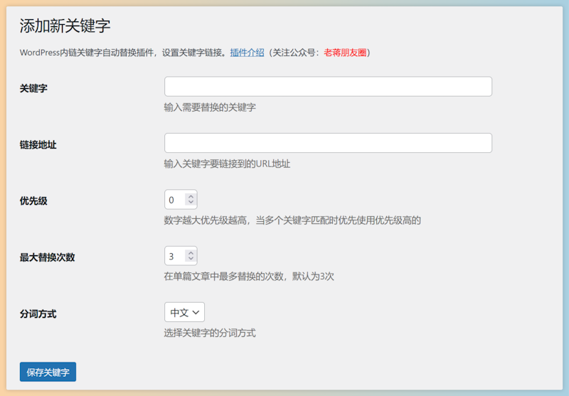 未经允许不得转载:老蒋玩开发 » LeKeylinks – 内链关键字自动描文本链接设置插件