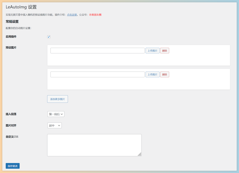 未经允许不得转载:老蒋玩开发 » LeAutoImg – 无图文章随机插入预设内容图片插件