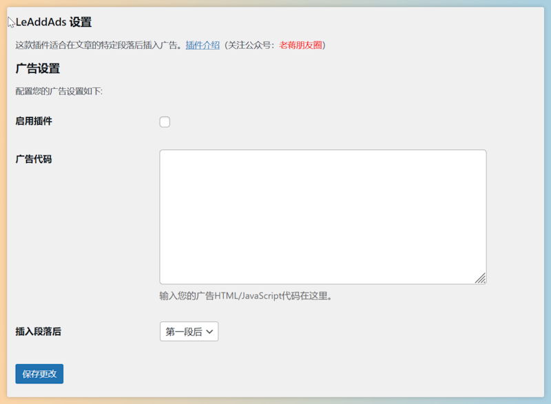 未经允许不得转载:老蒋玩开发 » LeAddAds – 自定义WordPress段落插入广告插件