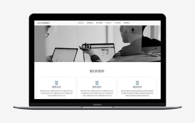 整个主题看着比较干净的。完全是通过后台控制设置即可实现,包括产品中心、客户中心,新闻动态,以及联系我们等常用的项目分类。