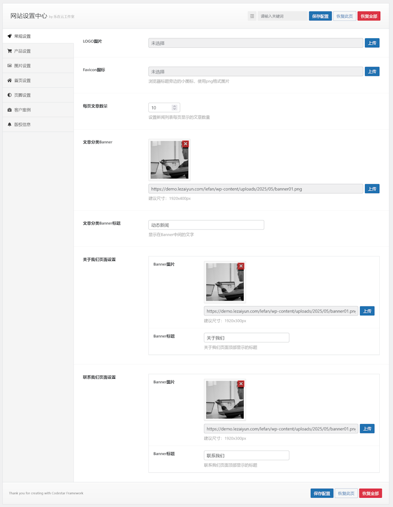 我们可以看到,这个WordPress 主题的后端控制界面还是比较齐全的,我们可以自定义各项前端显示的内容。