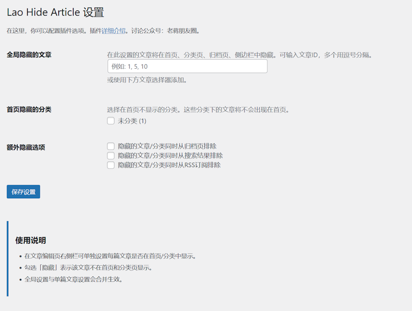 未经允许不得转载:老蒋玩开发 » Lao Hide Article 自定义隐藏WordPress文章和分类显示插件