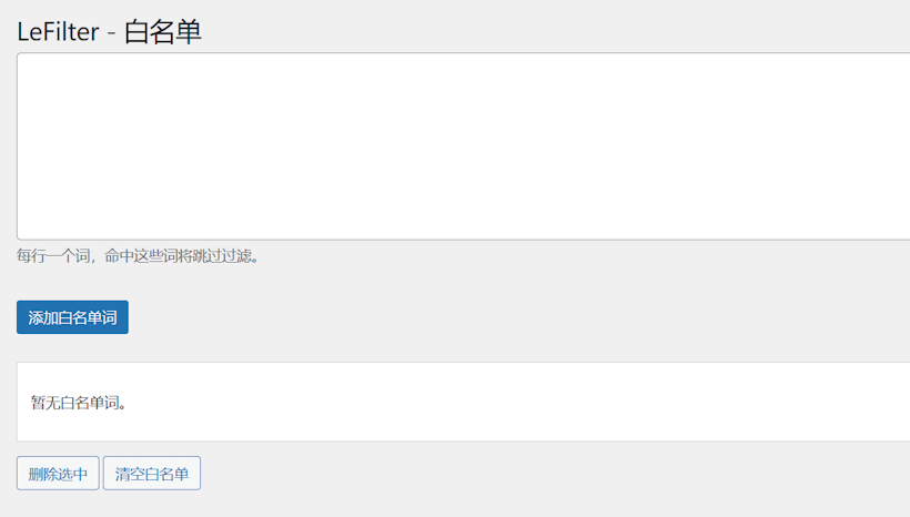 我们可以使用插件工具自动检索和过滤这些可能的敏感关键字。当然,市面上也有很多类似的插件和方法,有的甚至接入的百度文本审核API。在第一个版本的时候,老蒋没有考虑到接入百度文本审核,一来是需要付费,二来第三方可以得到常规的屏蔽关键字导入到本地库基本上可以起到屏蔽作用,三来毕竟也有整改期限,如果有被找可以再去定期添加关键字屏蔽库中。这不,经过张罗,这款 LeFilter 敏感关键字屏蔽插件初始版本上线。