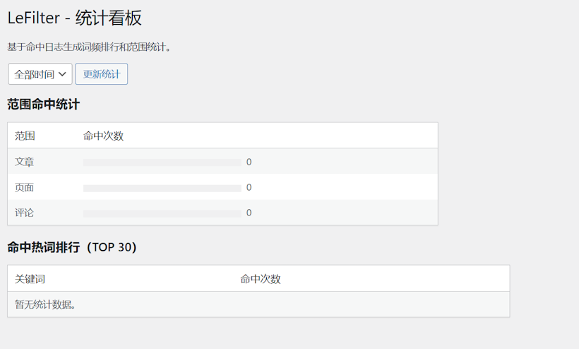 在这个插件的命中日志和统计中,可以看到文章、页面和评论的被替换的数量,然后根据实际需要去修改和替换。便于帮助我们去快速的定位需要修改的文章和段落。